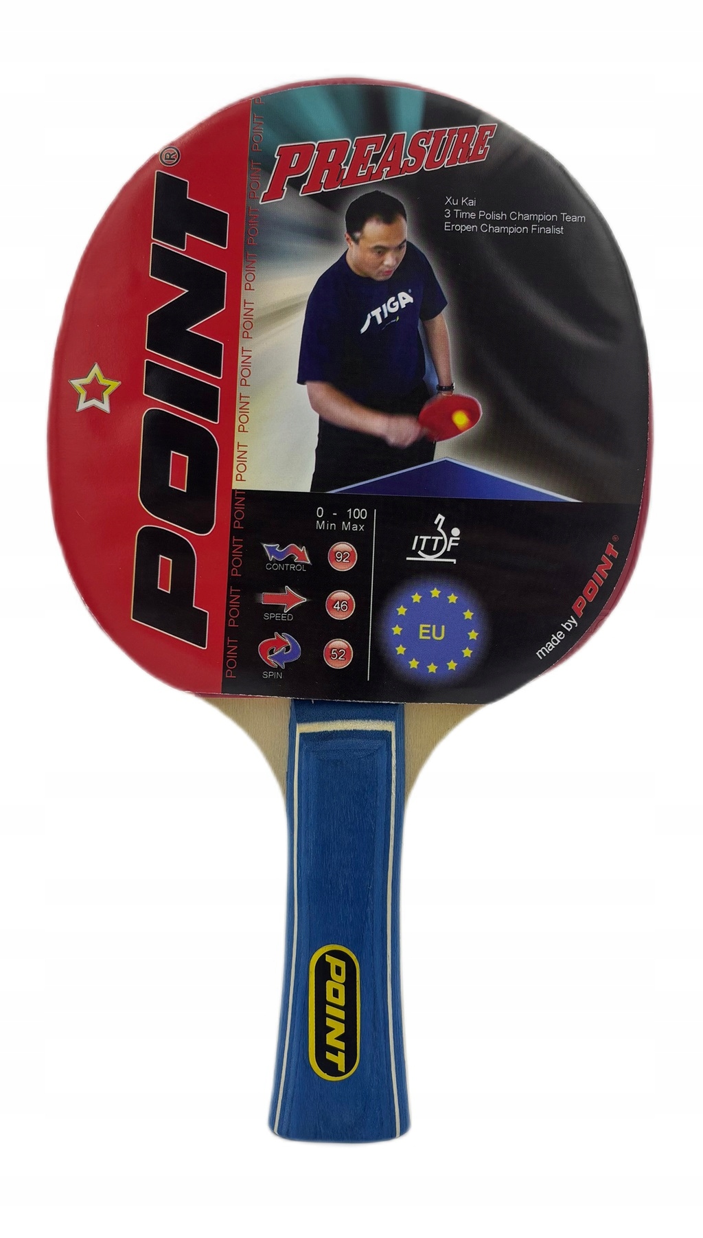 POINT PREASURE * to rakietka stworzona z myślą o początkujących tenisistach stołowych oraz miłośnikach rekreacyjnych pojedynków, którzy cenią sobie pełną kontrolę nad odbiorem piłki. Dzięki zaawansowanej powierzchni z gumy o optymalnej grubości oraz sprężystemu, a zarazem stabilnemu, wielowarstwowemu korpusowi, każdy Twój ruch jest przewidywalny i precyzyjny. Wyjątkowa warstwa gąbki minimalizuje nadmierną prędkość nadchodzącej piłki, co pozwala skupić się na doskonaleniu techniki backhandu czy forehandu.