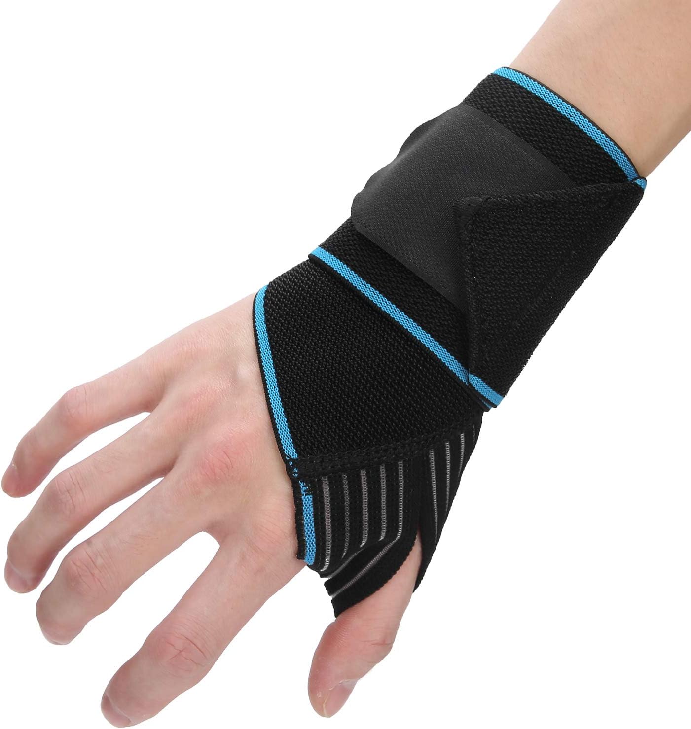 • elastyczne paski zapinane na rzep- rozciągliwe paski owijane wokół nadgarstka zwiększają ochronę stawu. Pozwalają kontrolować nacisk opaski. Utrzymują go w miejscu i zapobiegają przesuwaniu.