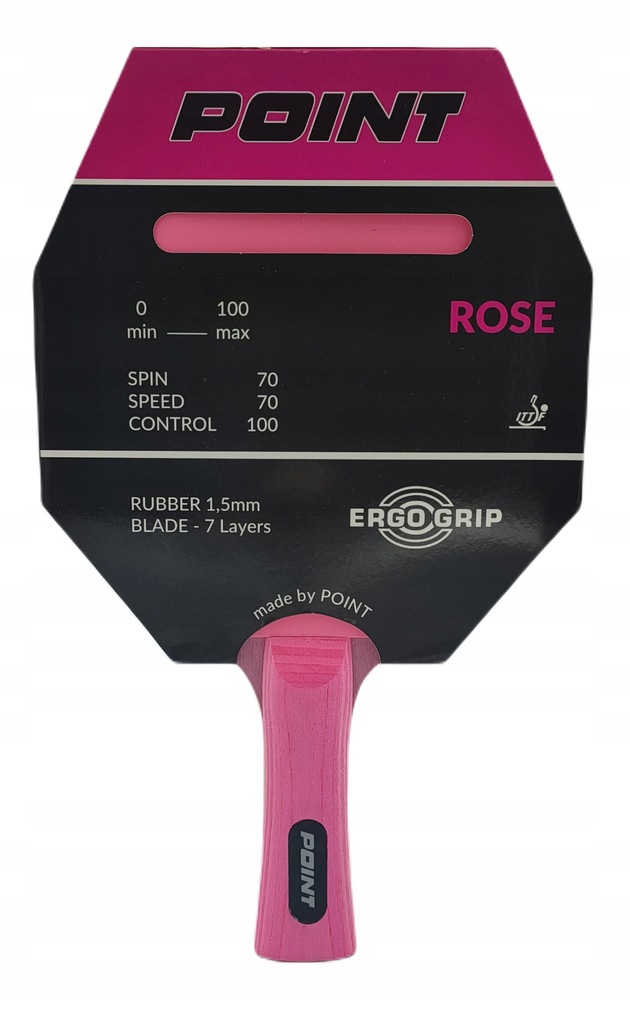 RAKIETKA POINT ROSE to rakietka klubowa o dużej kontroli, która pomoże ci nauczyć się podstawowych uderzeń. Rakietka do gry rekreacyjnej . Rączka w systemie ergo-grip rozszerzona ku dołowi zapewnia doskonały chwyt .